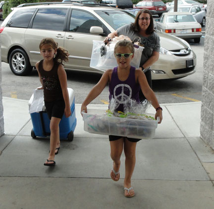 Lauren, Alexis and Beth Greenwald bring goods from Atlanta