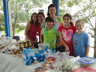She recruited friend Jamie Stern to help coordinate the sale. By 9 a.m. several long tables were laden with goods from individuals and businesses; there were no pricetags, just goods in exchange for donations.