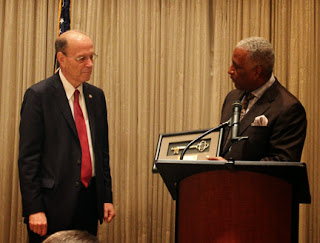 Left: Birmingham Mayor William Bell presents the key to the city to Ambassador Yoram Ettinger.