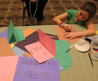 Two days later, community members made cards at Knesseth Israel for wounded soldiers. KI Rabbi Eytan Yammer left for a week in Israel the next morning.