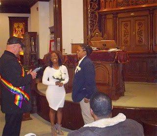 “Wedding Week is for everyone,” said volunteer Alix Moorehouse. She and her wife had a “Holy Union” ceremony in 1994 and married legally in Connecticut in 2009. “This is what equality means: everyone is treated the same and we all work together. The weddings in the park were incredible and I didn’t think the week could get any better, but here I am standing in a historic Jewish Temple celebrating same sex weddings.”