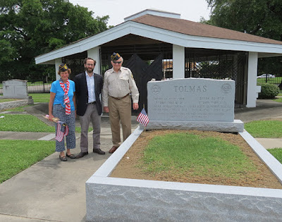 On Memorial Day, Jackie and Judge Sol Gothard, Commander of the Jules Lazard Post 580 New Orleans Jewish War Veterans of America, and Rabbi Gabe Greenberg of Congregation Beth Israel placed an American flag at the gravesite of Oscar J. Tolmas in Beth Israel Cemetery. Tolmas served in the Navy during World War II.