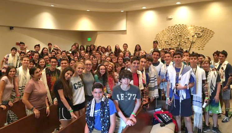Above: Over 125 Conservative youth visited Birmingham’s Temple Beth-El as part of the USY on Wheels and Camp Ramah programs. They overnighted, visited civil rights sites and led minyan on July 27.