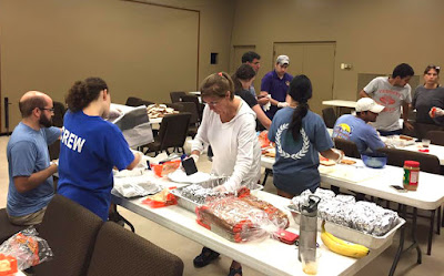 Volunteers prepare meals at Beth Shalom in Baton Rouge (from the congregation’s Facebook)