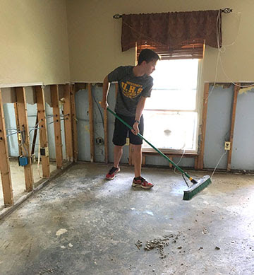Above: Max Levy helps clean at the home of a Beth Shalom congregant in Baton Rouge, as the recovery process begins from this week’s floods.