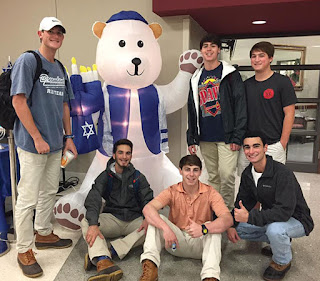 In late November, Besnoy said, Hillel was invited by the university — and funded — to participate in a campus-wide Stress-Free Daze holiday celebration at the student center, where they had an inflatable Chanukah bear and a menorah, and handed out doughnuts.