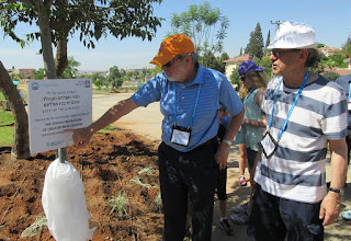 Eddie Soll and Michael Weil at the tree planting in Partnership2Gether community Rosh Ha’Ayin, during last week’s New Orleans Mega-Mission to Israel. Photo by Tana Velen.