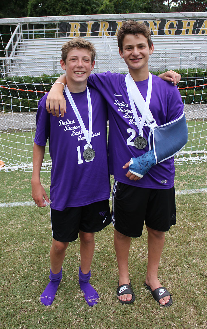 Ethan Katz and Eli Jaffe after the championship game. Jaffe broke his wrist in an earlier soccer match.