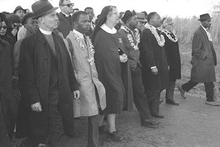 Community and religious leaders, including Rev. Dr. Martin Luther King, Jr. (third from right) and Rabbi Abraham Joshua Heschel (second from right), in the Selma to Montgomery march for voting rights in 1965. Photo copyright Dan Budnik, courtesy USHMM