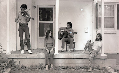 Townes Van Zandt, Susanna Clark, Guy Clark and Daniel Antopolsky on the porch of the Clarks’ East Nashville home, in an iconic 1972 photo