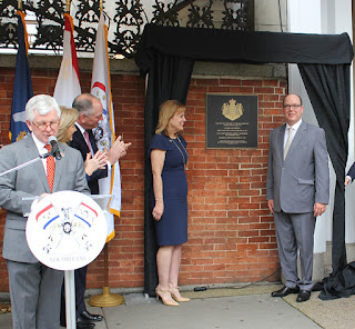 His Serene Highness Prince Albert II of Monaco and Cheryl Landrieu unveil plaque marking birthplace of Princess Alice in New Orleans