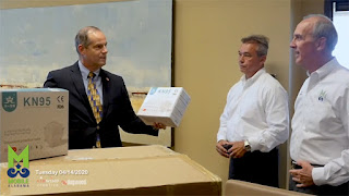 On April 14, the city of Mobile uploaded a video of Jim Jewell, Special Agent in Charge of the Mobile division of the Federal Bureau of Investigation, presenting 1,000 N95 masks to Mayor Sandy Stimpson.