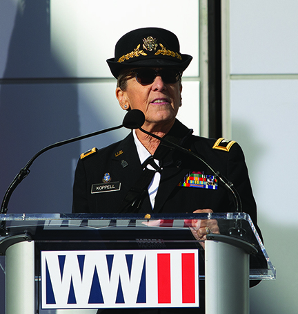 Rabbi Bonnie Koppell, the first female rabbi to serve in the U.S. military, gave the invocation. Now the associate rabbi at Temple Chai in Phoenix, she served in the Army for 38 years and retired as a colonel. She had joined the Army reserves in 1978 and was ordained as a Reconstructionist rabbi in 1981.