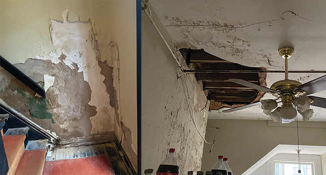 As is typical for buildings from that era, there has been a lot of water intrusion and “the plaster is constantly shedding,” and many other places in the building need basic repair. The electrical system is “way out of date,” which could affect the building’s insurability in the future.